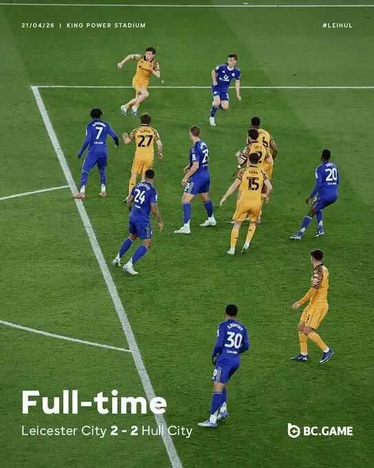 黄粱一梦!莱斯特城夺得英超冠军的10年后提前降入英甲 更新时间: 2026-04-22 16:42:53 英冠第44轮,莱斯特城在主场王权球场2-2战平赫尔城,正式降入英甲。 由于西布罗姆维奇已经赢球(3-0击败了沃特福德),所以莱斯特城丧失了理论上保级的希望。 其他JRs回复: